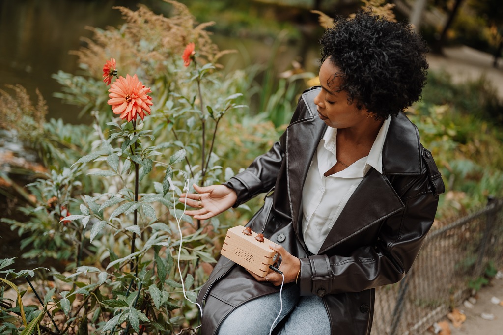 C’est une passerelle entre la nature, la technologie et l’artisanat. Conçu pour les artistes, les designers, les thérapeutes et les curieux du vivant, il permet d’écouter la musique générée par les plantes en temps réel.